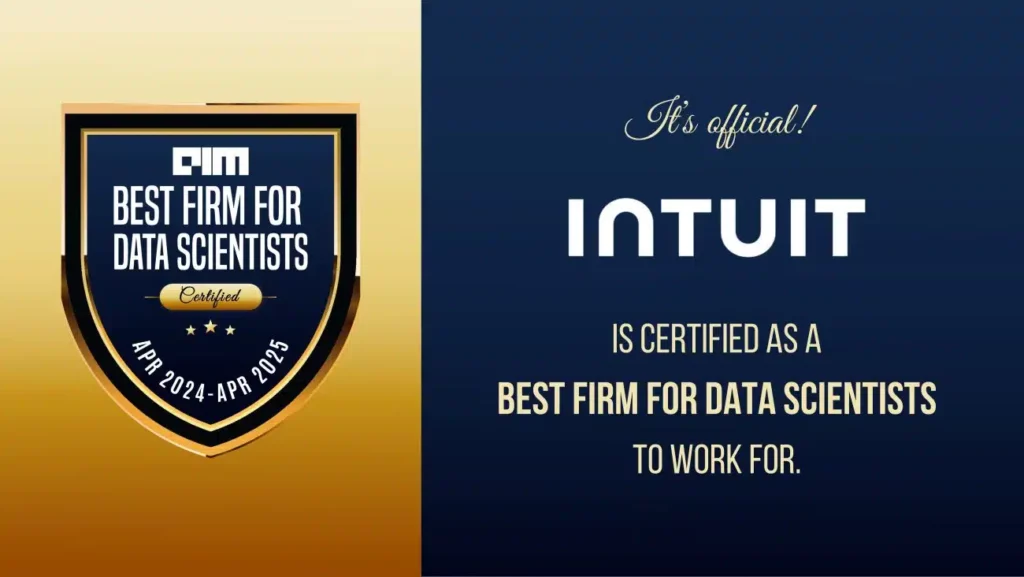 Intuit is certified as the Best Firm For Data Scientists to work for by Analytics India Magazine (AIM) through its workplace recognition programme.